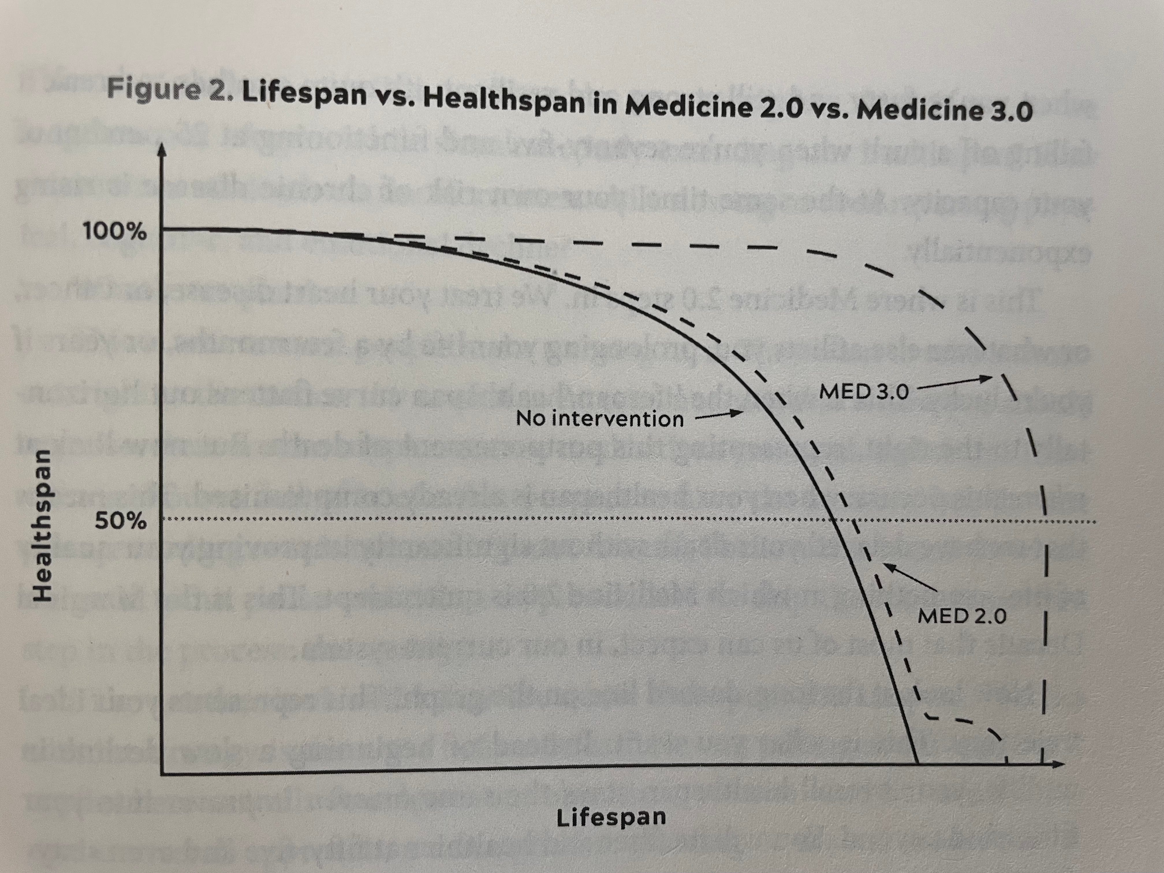 What I found illuminating from the book is the link between grip strength and stability to health span, the amount of time you get to enjoy on earth before that last alive-but-not-living phase of basically just existing mentally and/or physically. The dream for everyone — especially for those like me who had kids later in life and want to extend our overlap — is to push that health span out until a hopefully steep decline: